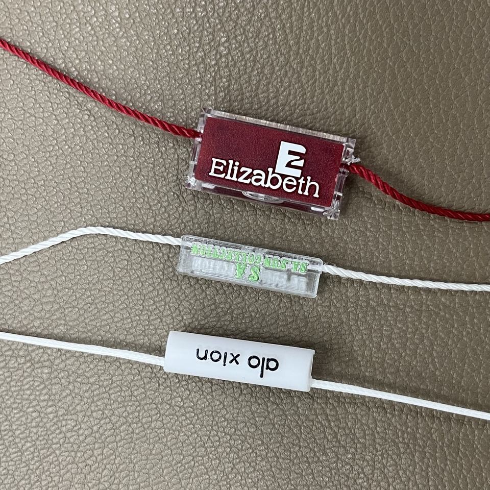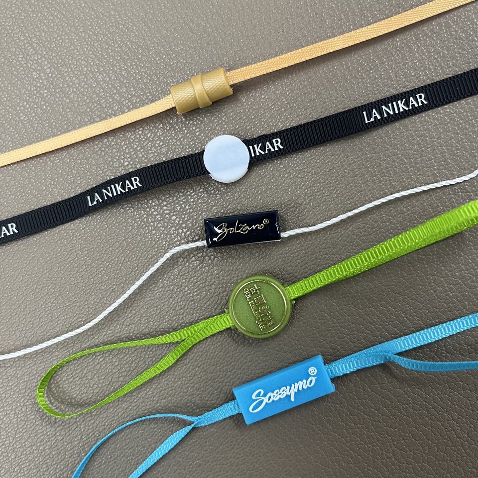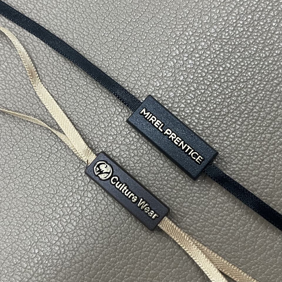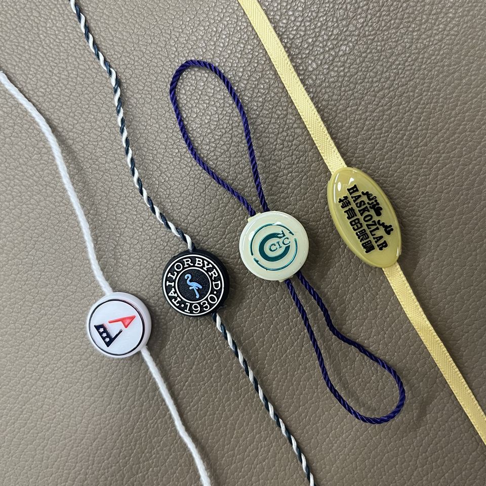 Etiqueta colgante de plástico redonda dorada impresa en 3D personalizada con cordón elástico estampado cinta de bloqueo de logotipo para bolsos ropa etiquetas de prendas
