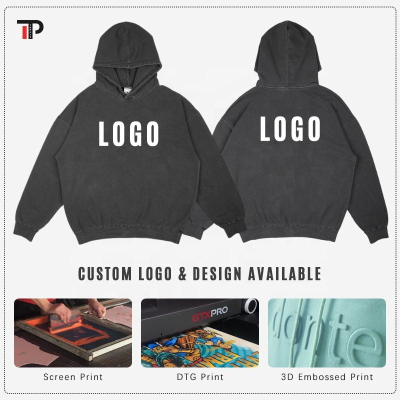 Sudadera con Capucha Corta para Hombre, Personalizada con Impresión 3D en Relieve, 500 Gsm, 100% Algodón, para Invierno