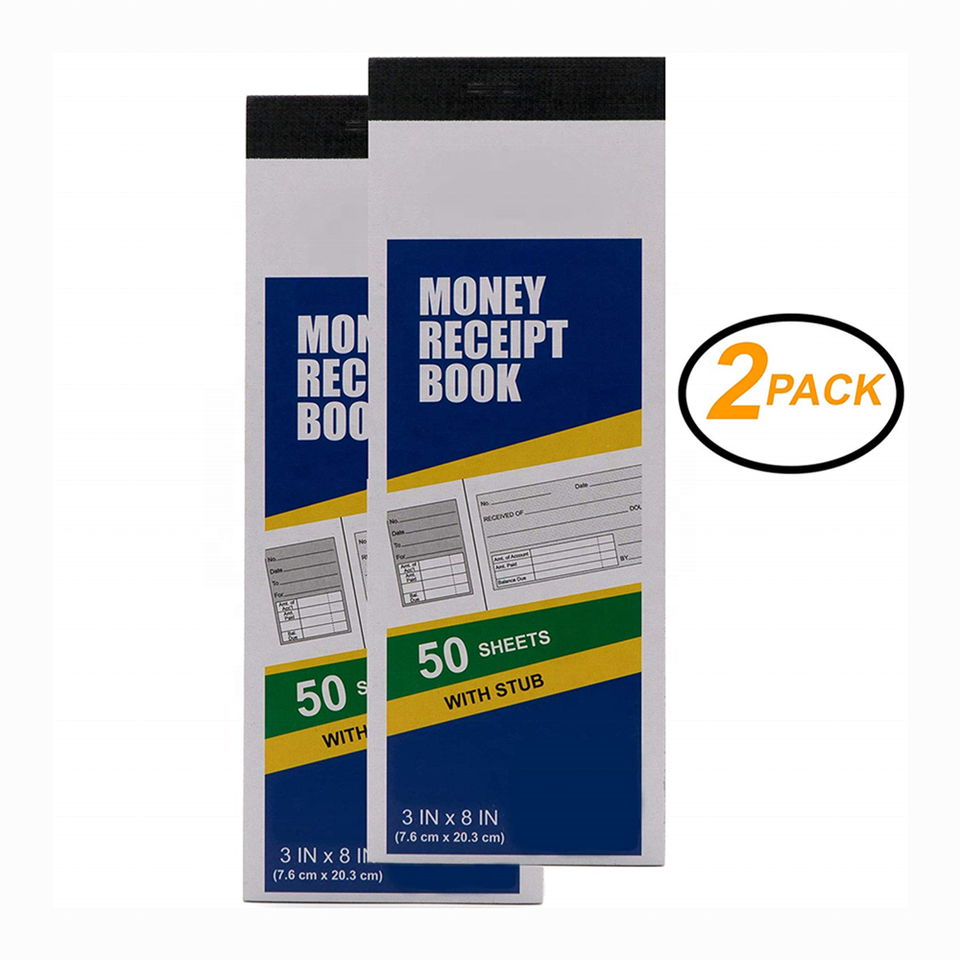 Libreta de Recibos de Dinero Personalizada de 3x8 Pulgadas, 50 Hojas con Copia Instantánea, Paquete de 2 para Restaurante y Hotel