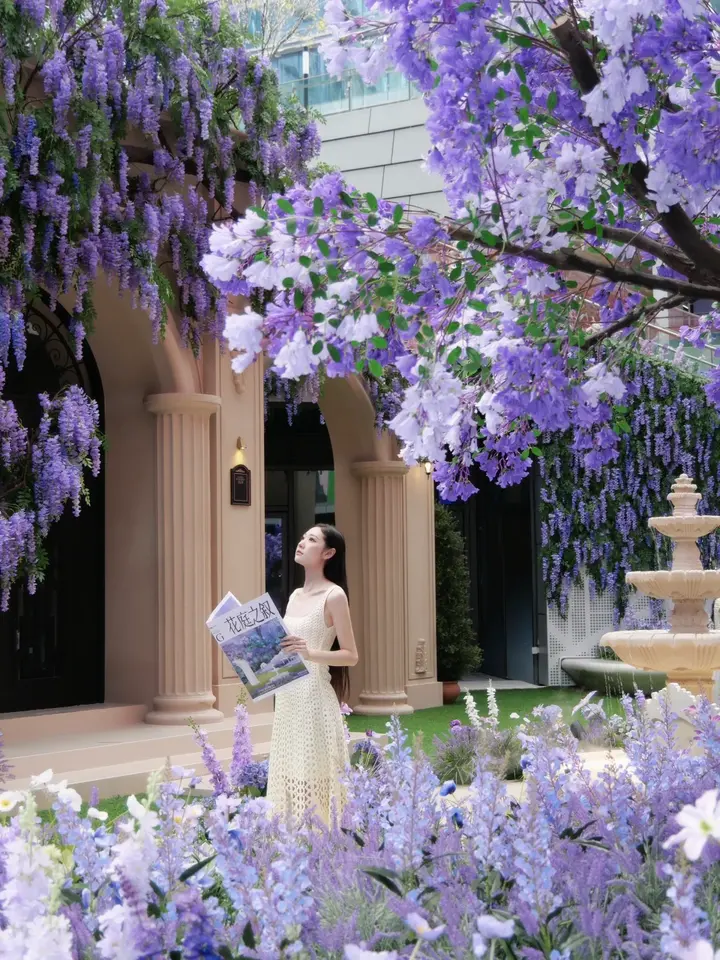 Árboles de flores de Jacaranda artificiales de 4,5 m personalizados para la decoración del centro comercial diseño floral de imitación realista