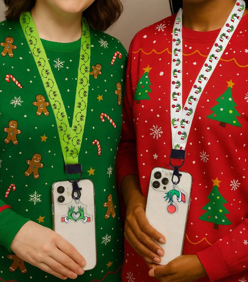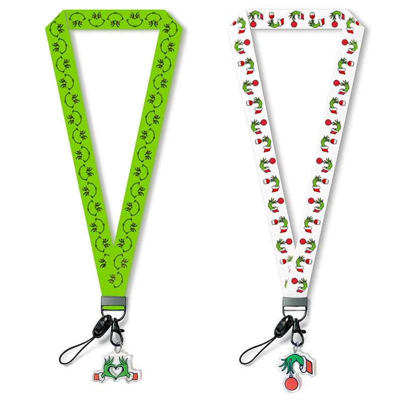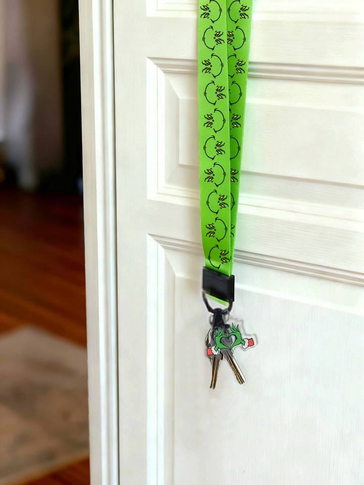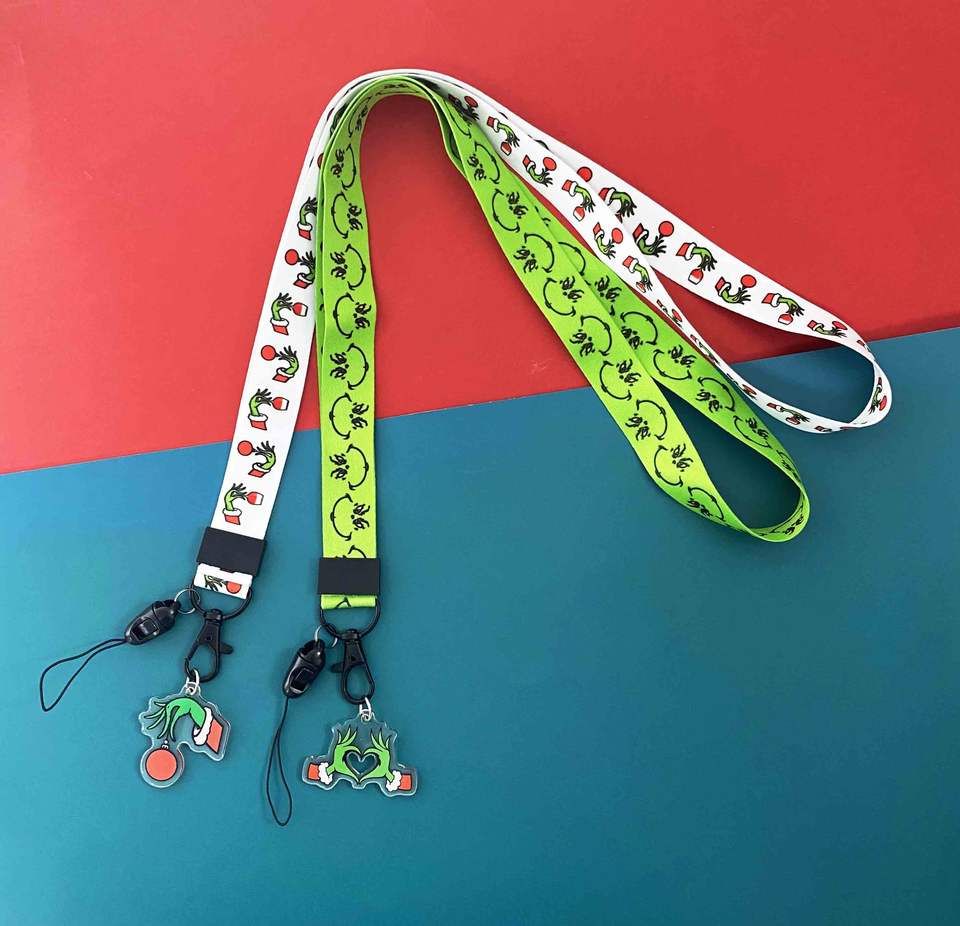Cordón Navideño de Grinch para Tarjetas de Identificación, Correa para el Cuello con Llavero para Oficina y Escuela