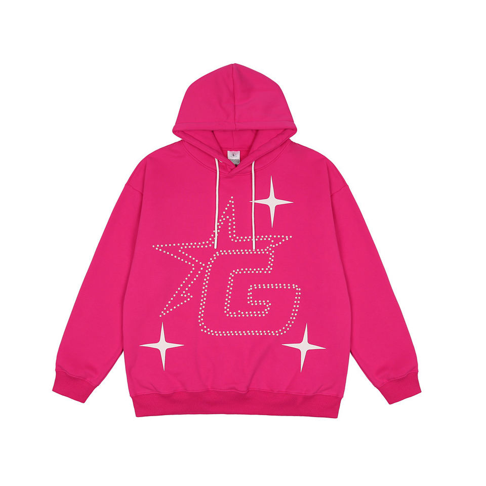 Custom 400 Gsm Mens Full Rhinestone Hoodies Acid Wash Oversize Pullover Dtg Printing Boxy Fit Hombres Sudadera con capucha desgastada