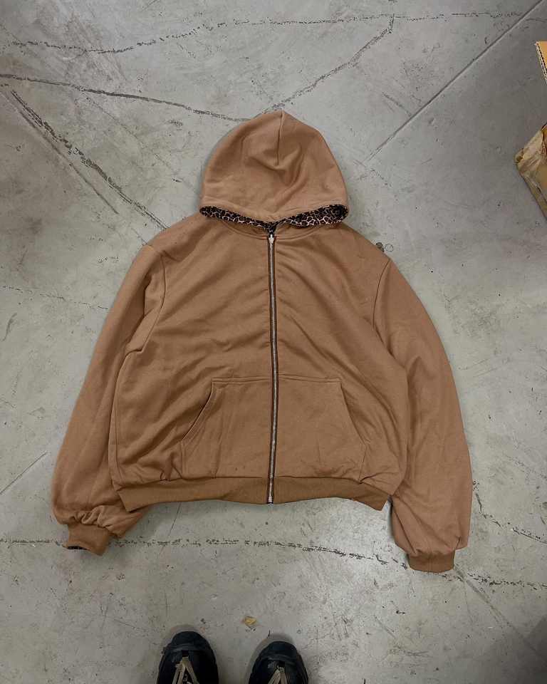 Sudadera con capucha y cremallera con estampado de leopardo completo de gran tamaño de algodón 400GSM personalizada sudadera con sublimación unisex