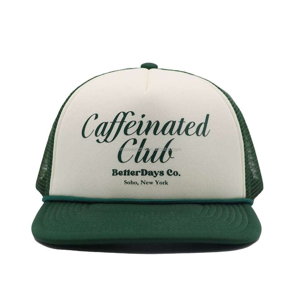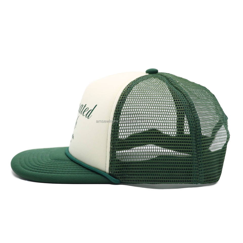 Gorra Trucker de Mezclilla con 5 Paneles y Estampado Puff Personalizado, con Cuerda, Bicolor, para Pesca, Trabajo Agrícola y Actividades al Aire Libre