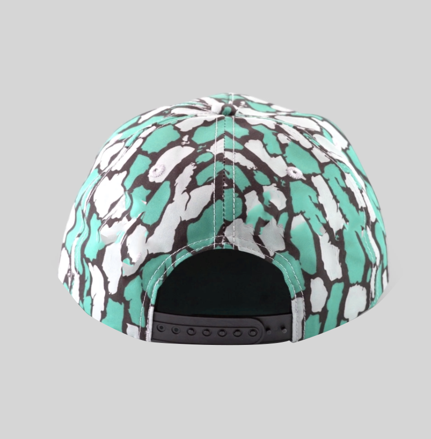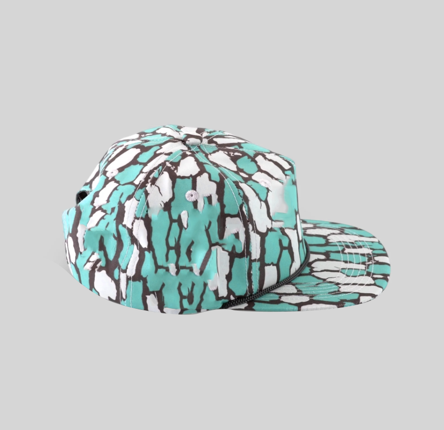 Gorras Snapback con estampado de piedra turquesa y camuflaje de cuerda de 5 paneles personalizadas, gorra de béisbol plana de tela de nailon para caza al aire libre