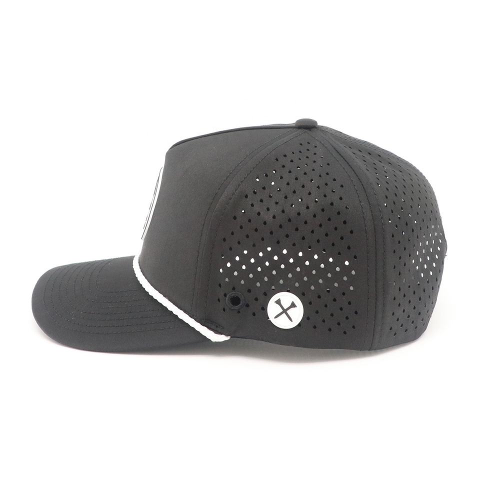 Gorra de Béisbol Personalizada de 5 Paneles con Logotipo de PVC y Cuerda, Gorra Impermeable con Perforaciones Cortadas a Láser, Gorra de Golf con Soporte para Tees