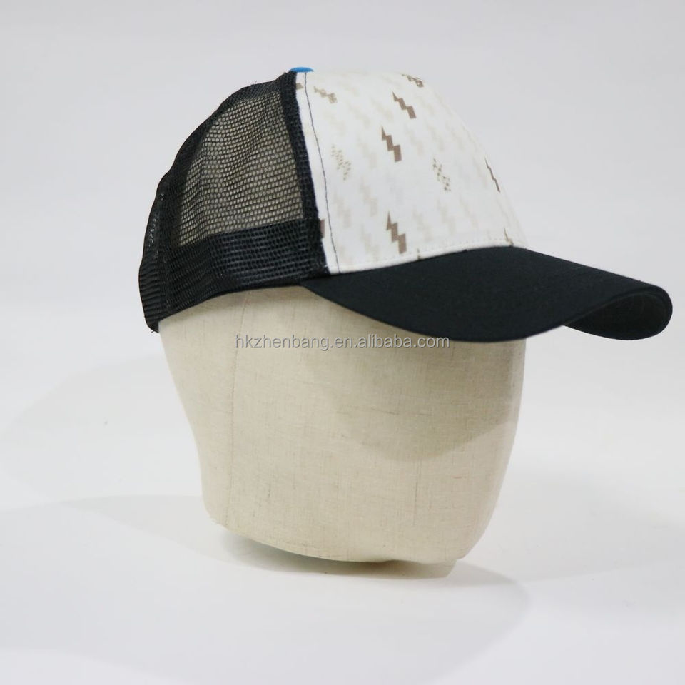 Gorra Trucker Personalizada de 5 Paneles con Estampado de Rayo, Malla Trasera Negra, Ajustable con Cierre a Presión, para Ropa Urbana y Casual