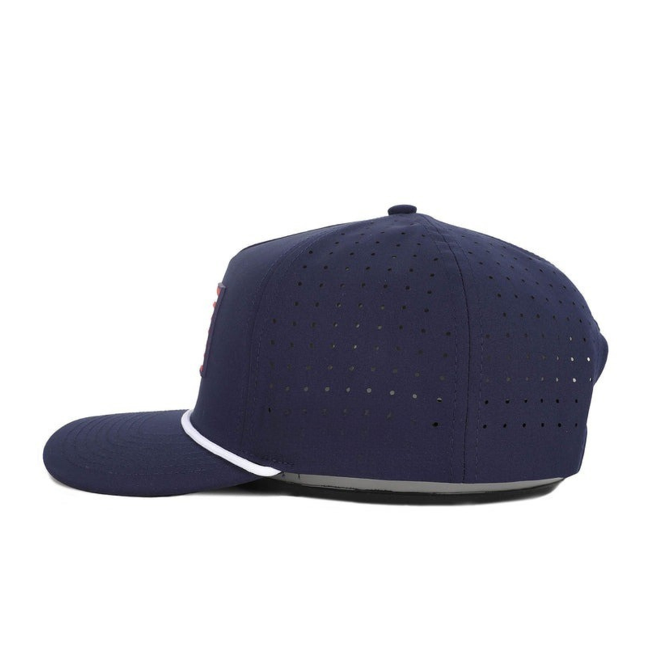 Gorra de béisbol y sombrero personalizados de 5 paneles, estilo golf, perforados con láser, de alto rendimiento, con visera curva impermeable y malla de cuerda.