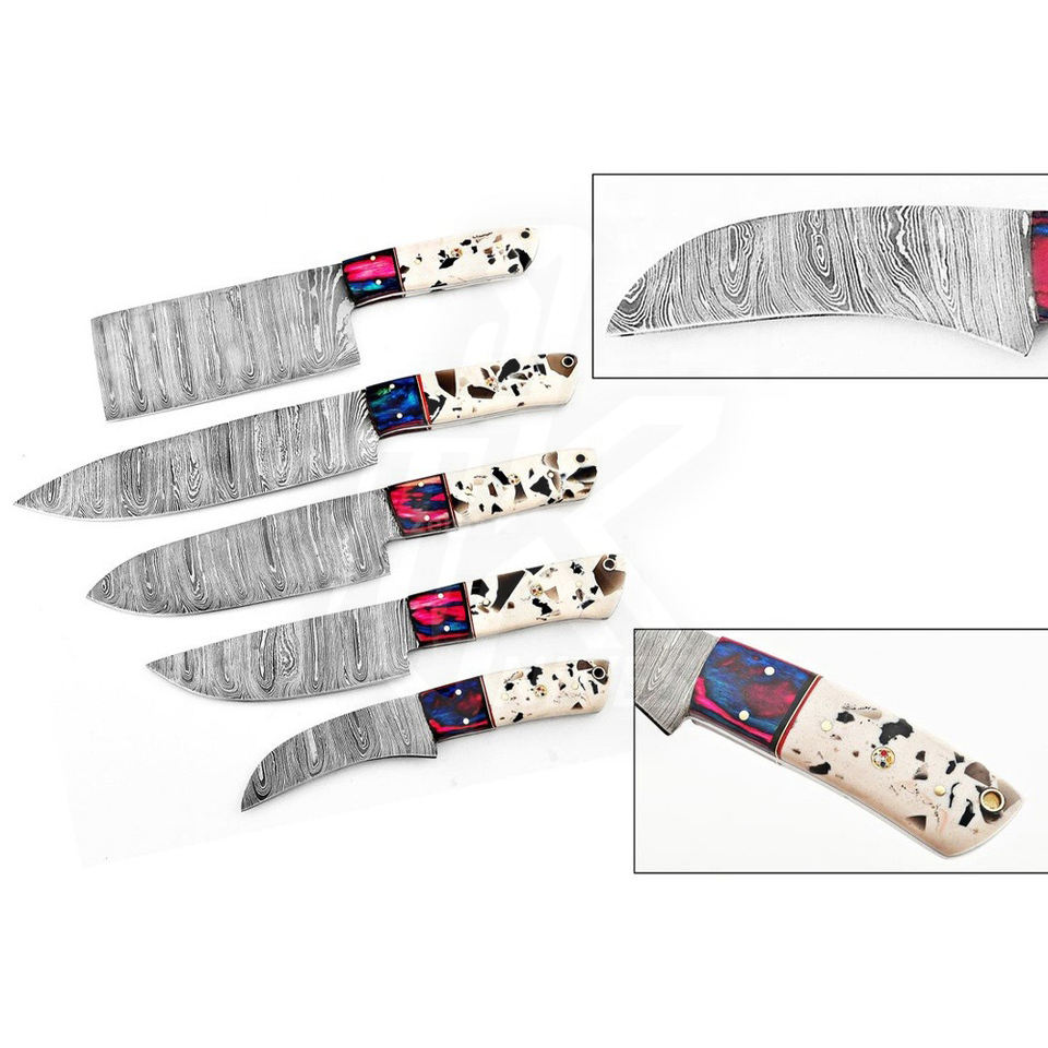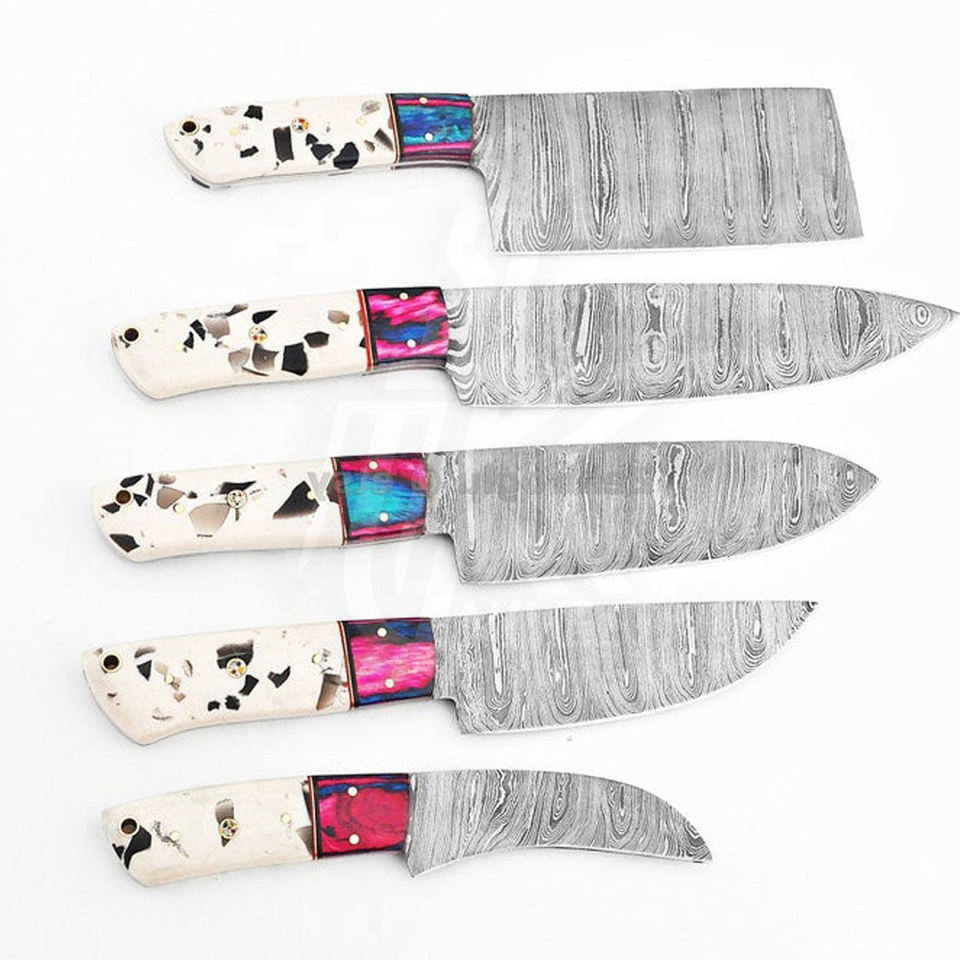 Juego de cuchillos de cocina personalizados, juego de 5 piezas de cuchillos de Chef de Damasco forjado a mano