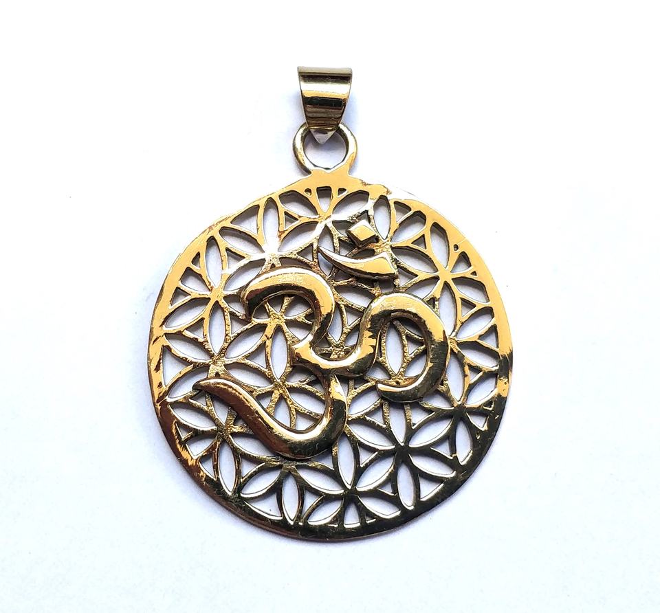 Colgante personalizado de 5 cm para mujer, de Color dorado, de latón, con símbolo de Yogo OM sándalo