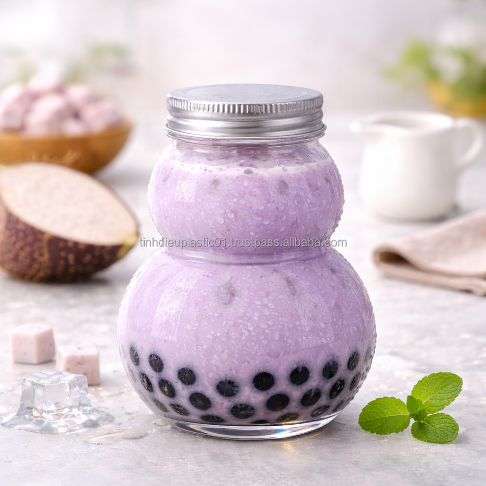 Botella de Té Personalizada de 500 ml en Forma de Calabaza, PET, Transparente, de Grado Alimenticio, Hecha en Vietnam, con Tapa de Rosca