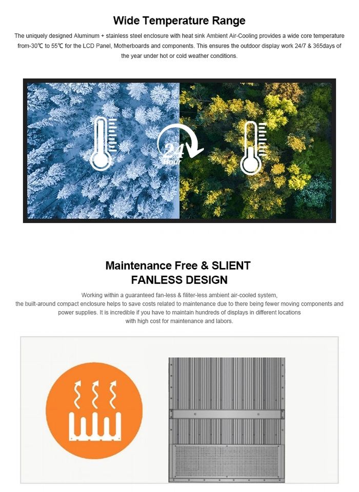 Pantalla de señalización digital Lcd montada en la pared exterior personalizada de 55 pulgadas resistente a la intemperie IP56 exterior 3500NITs pantalla de publicidad Lcd