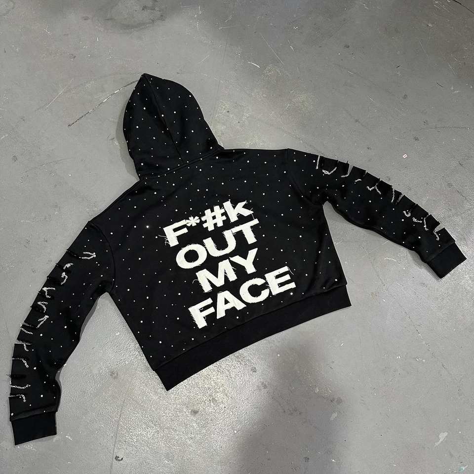 Sudadera con capucha personalizada de 550 g/m² de doble capa con pedrería, de peso pesado, con capucha doble, de forro polar cepillado, corte holgado y corto
