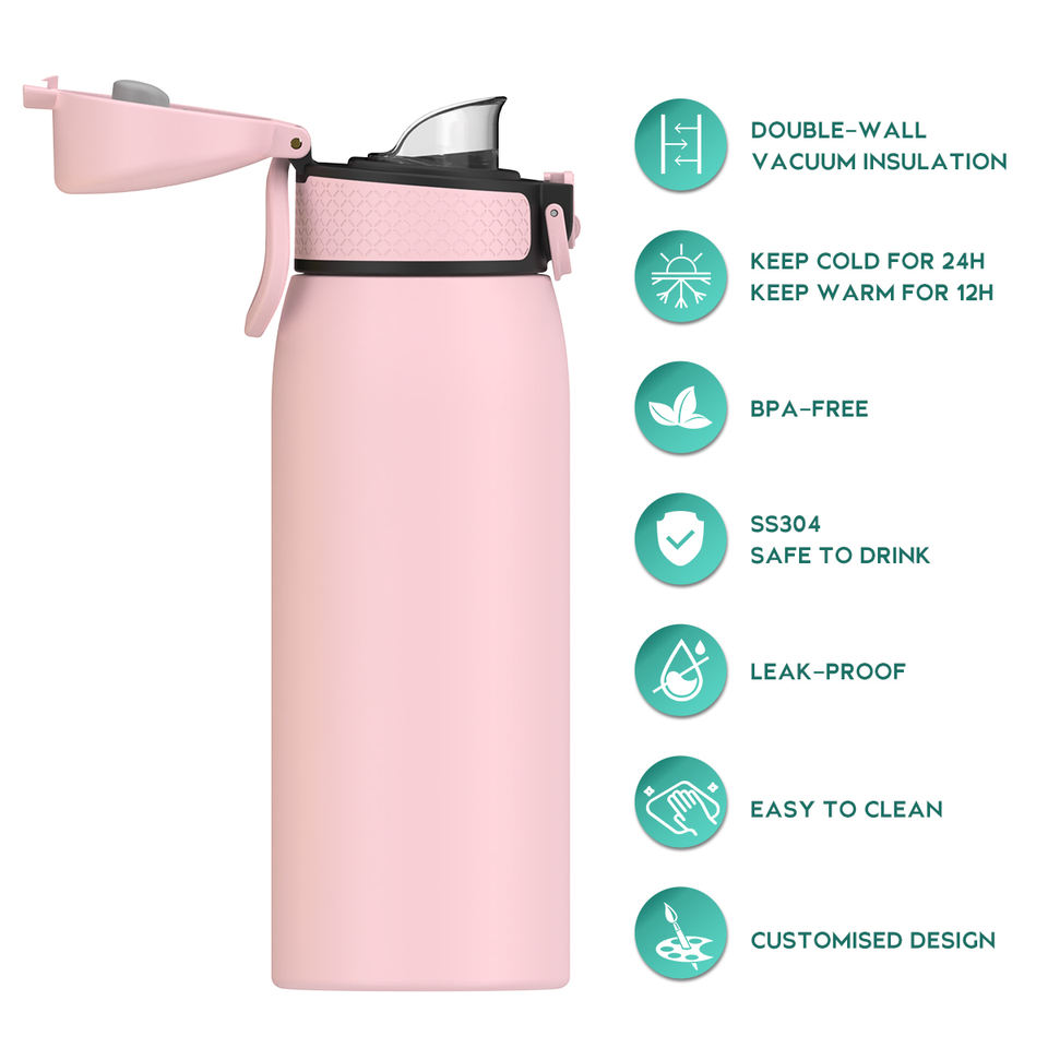 Botella Deportiva Personalizada de 550 ml, Aislada, de Doble Pared, de Acero Inoxidable, con Recubrimiento en Polvo, de un Solo Color, Libre de BPA