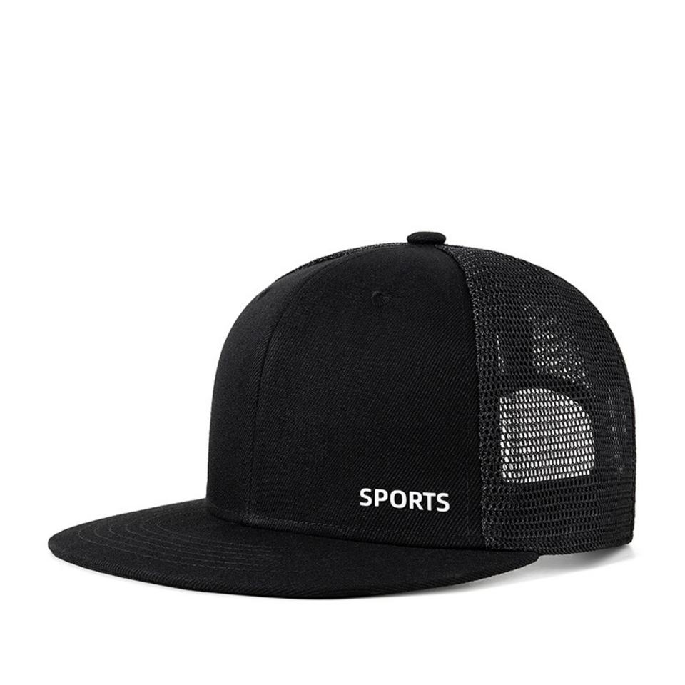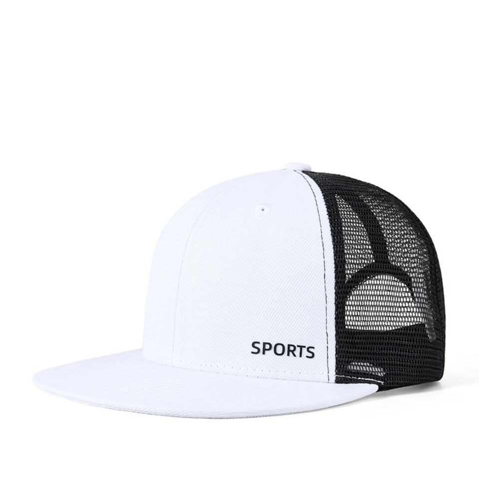 Gorra Trucker de Algodón Personalizada de 6 Paneles con Visera Plana Cuadrada, Diseño de Color en Contraste, Malla Vaquera y Cierre Ajustable para Hip Hop, Casual y Actividades al Aire Libre