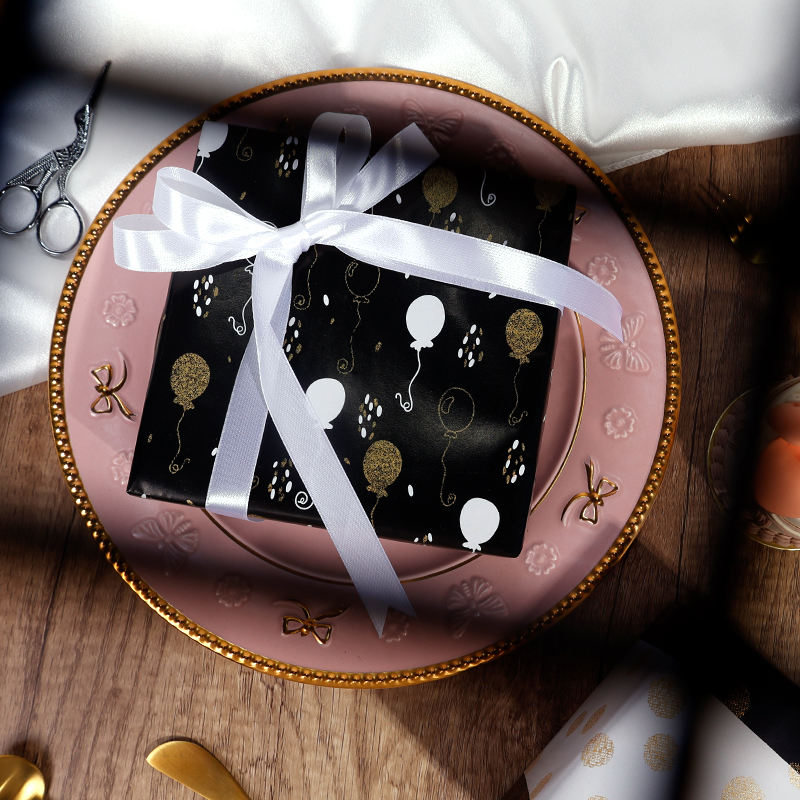 Personalizado 80g de lujo boda cumpleaños regalo de Navidad papel de embalaje 43*300 cm clásico globo punto papel de regalo