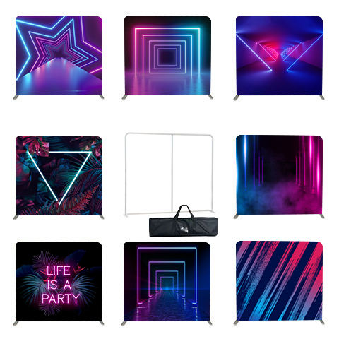 Soporte de Banner Personalizado de 8 pies para Fotomatón con Tela Tensada Impresa, Marco de Aleación de Aluminio y Diseño de Funda de Almohada para Ferias Comerciales