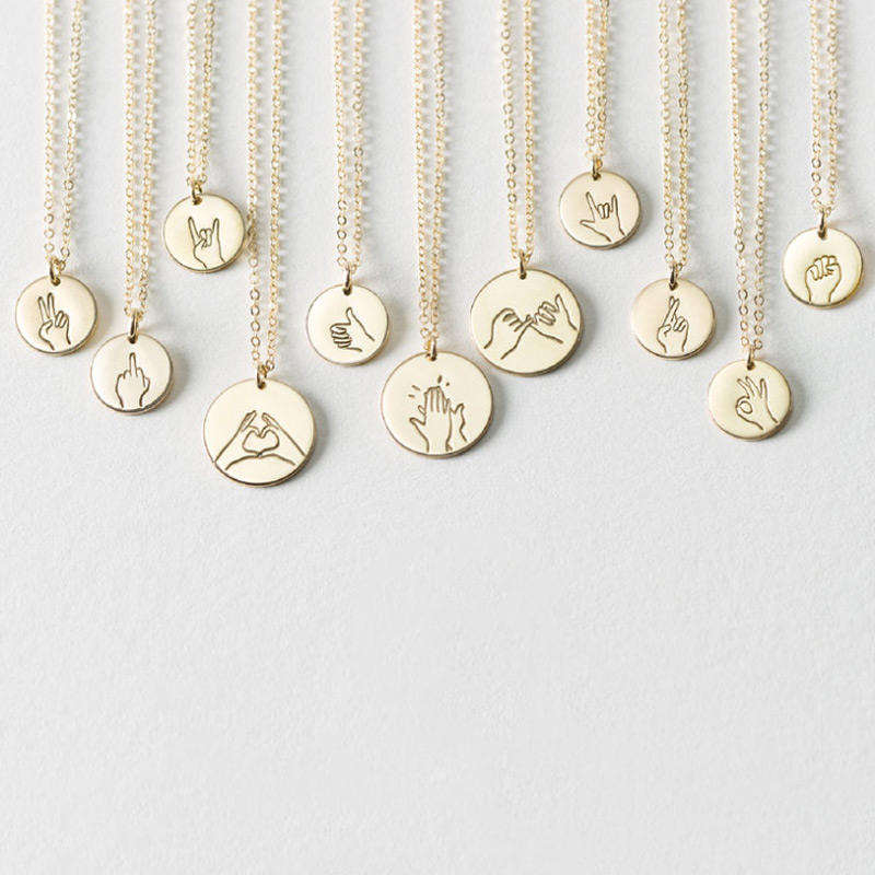 Joyería personalizada Plata de Ley 925 grabada en lenguaje de señas te amo gestos de mano collar joyería de amistad