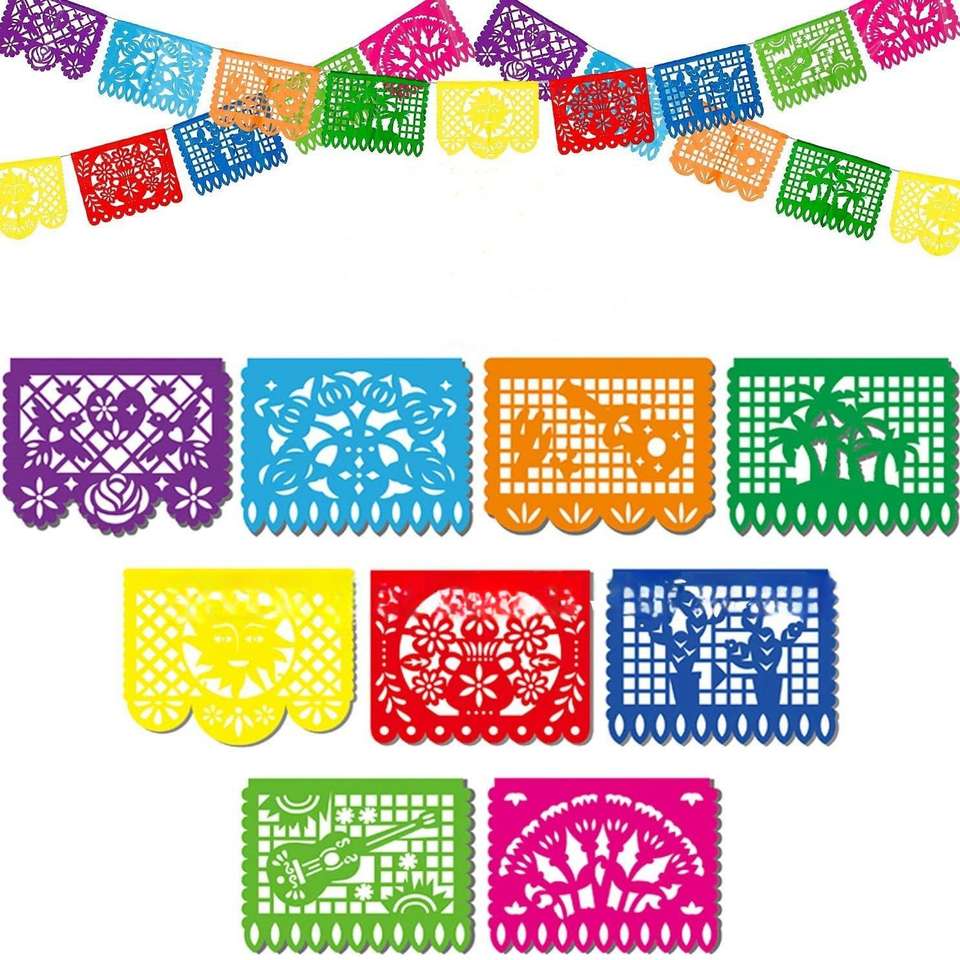 Banderas Colgantes Personalizadas de Papel de Seda de 9 Piezas de 20*30cm para el Día de Muertos, Ino de Mayo, Fiesta Mexicana