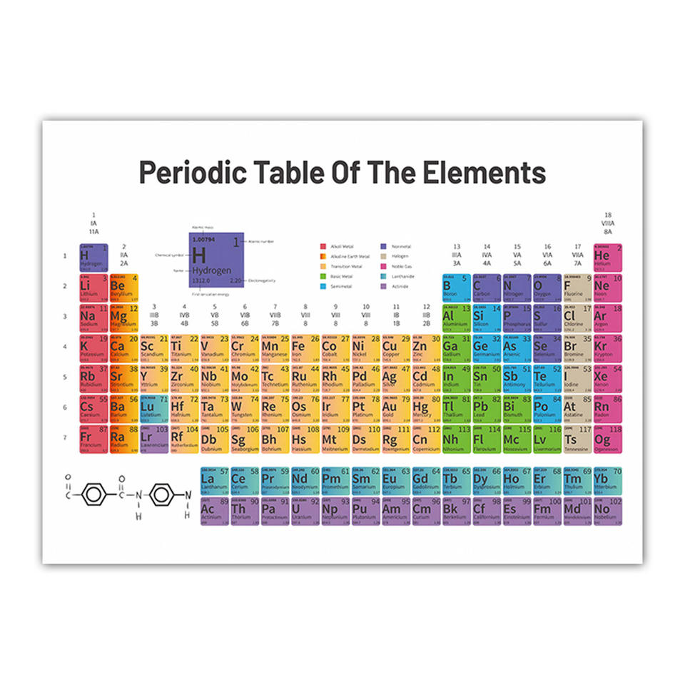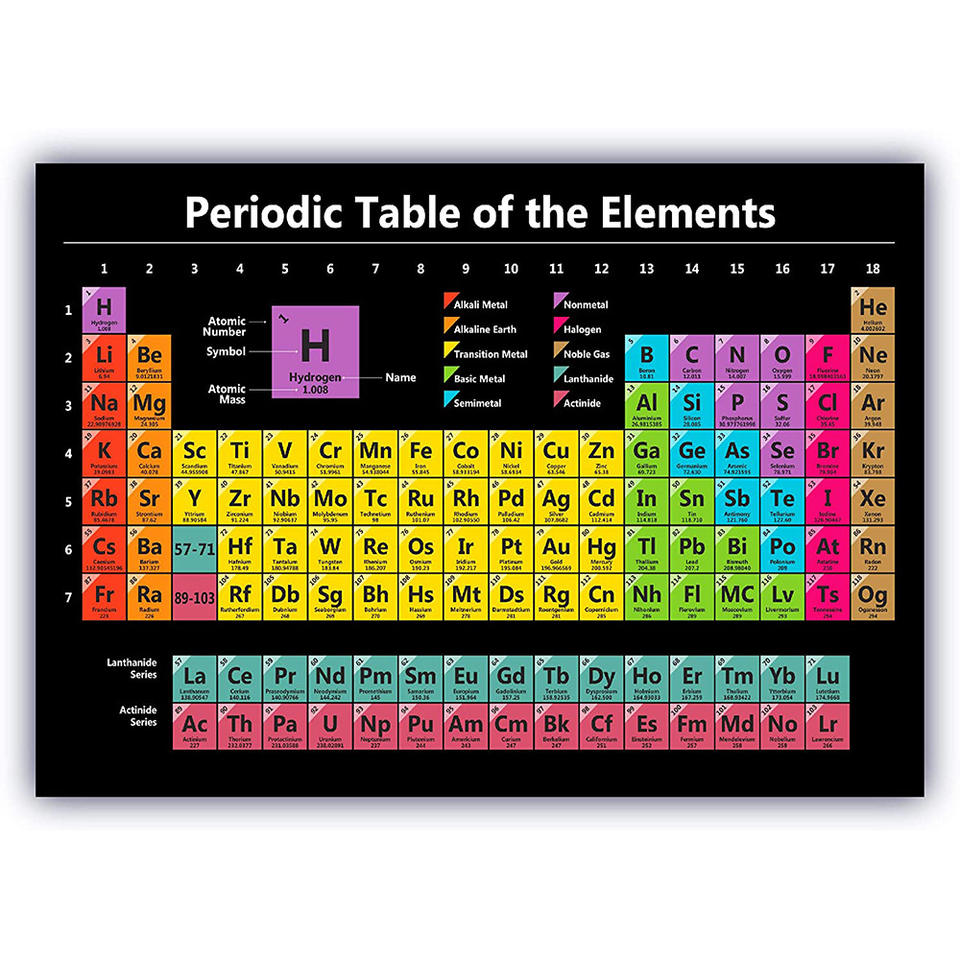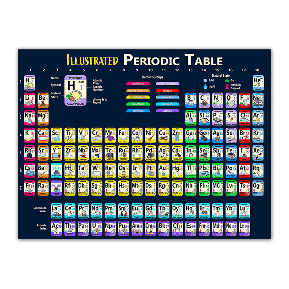 Póster Educativo Personalizado de la Tabla Periódica de los Elementos A0 A1A2 en Inglés para la Enseñanza de Química, Ciencia, Educación Infantil, Aula Escolar
