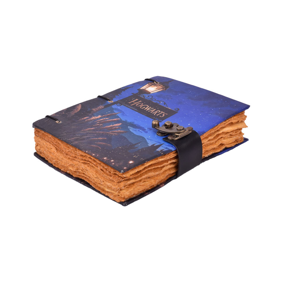 Cuaderno de Papel Hecho a Mano Personalizado A5 Hogwarts con Cierre Metálico | Diario Vintage de 200 Páginas con Cubierta de Cartón Ecológico, Ideal para Regalo