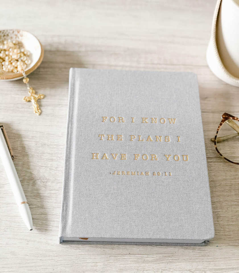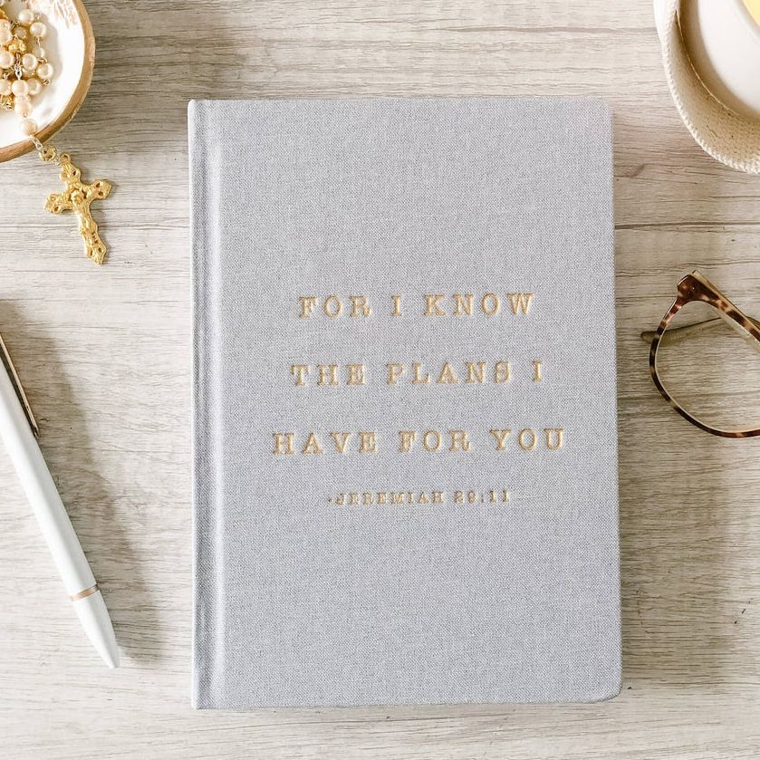 Cuadernos de Oración Personalizados A5 con Tapa Dura de Tela de Lino, Cosidos con Hilo, Regalo, Diario Devocional, Estudio Bíblico, Reflexión Diaria, Dorado