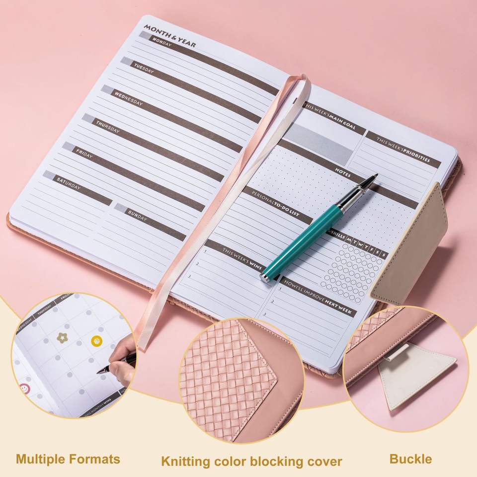 Cuaderno A5 personalizado de gestión del tiempo, planificador mensual, libro de presupuesto, sin fecha, planificador semanal, cuaderno de planificación de tejer