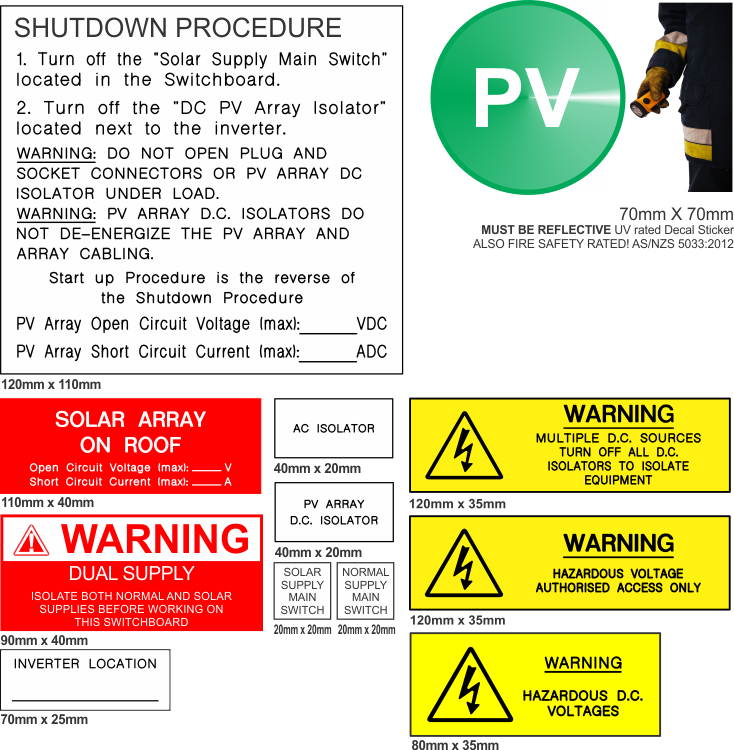 Nombre:Personalizado ASB advertencia sol solar PV etiqueta engomada
