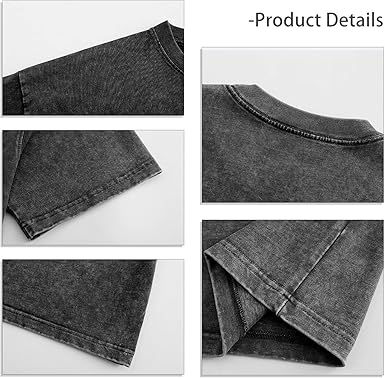 Camisetas Personalizadas con Cuello Redondo y Hombros Caídos, Lavado Ácido, 100% Algodón Jersey, Tallas Grandes, Camisetas Personalizadas para Hombre