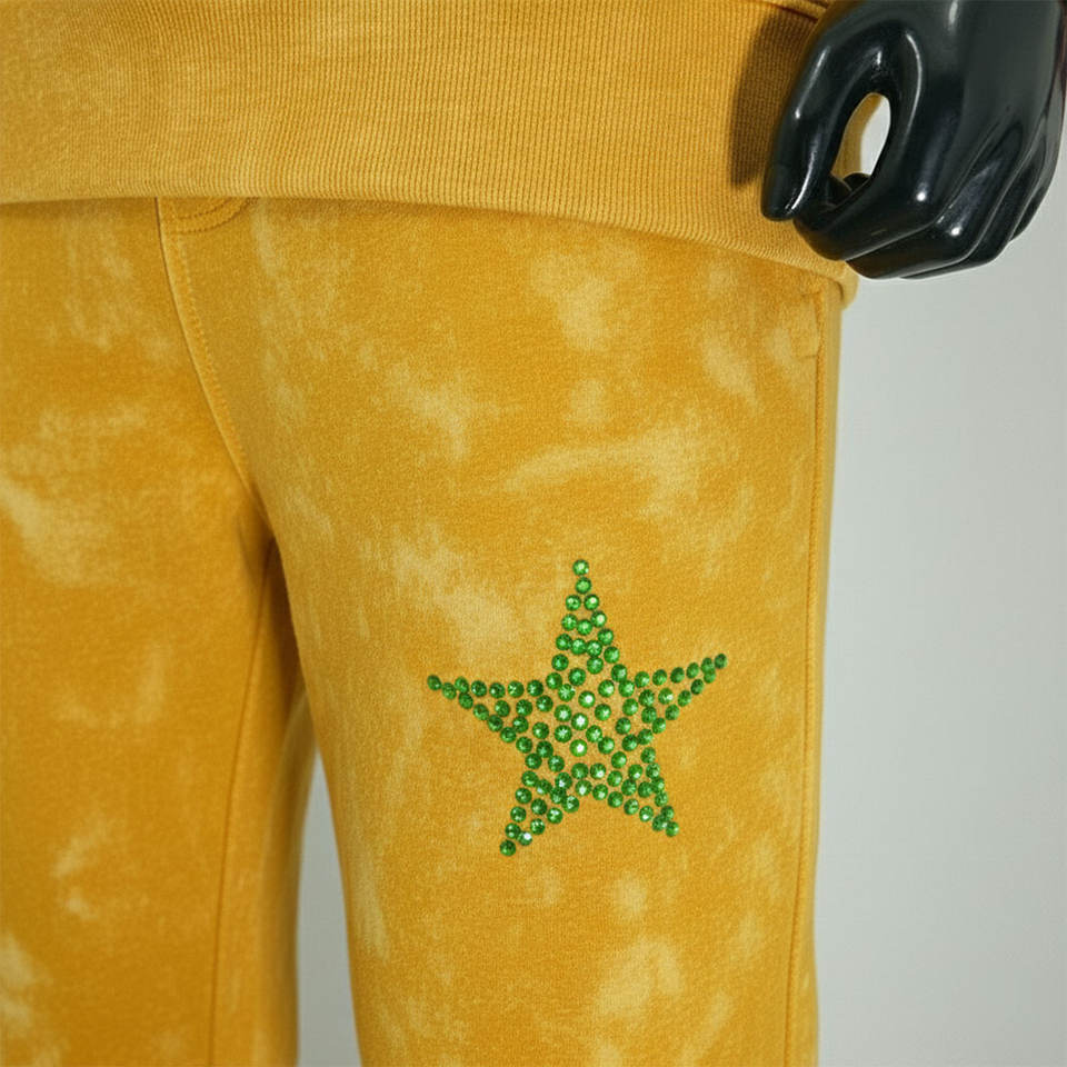 Conjunto de Chándal Personalizado con Lavado Ácido y Pedrería, Sudadera con Capucha con Cremallera y Pantalones Deportivos Holgados de Pierna Recta, 100% Algodón French Terry, MOQ 10