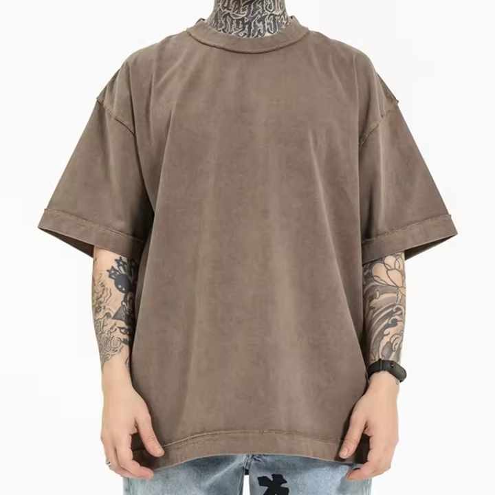 Camisetas desgastadas lavadas con ácido personalizadas, camisetas de algodón 100% en blanco de gran tamaño, camiseta Vintage Boxy Fit para hombres