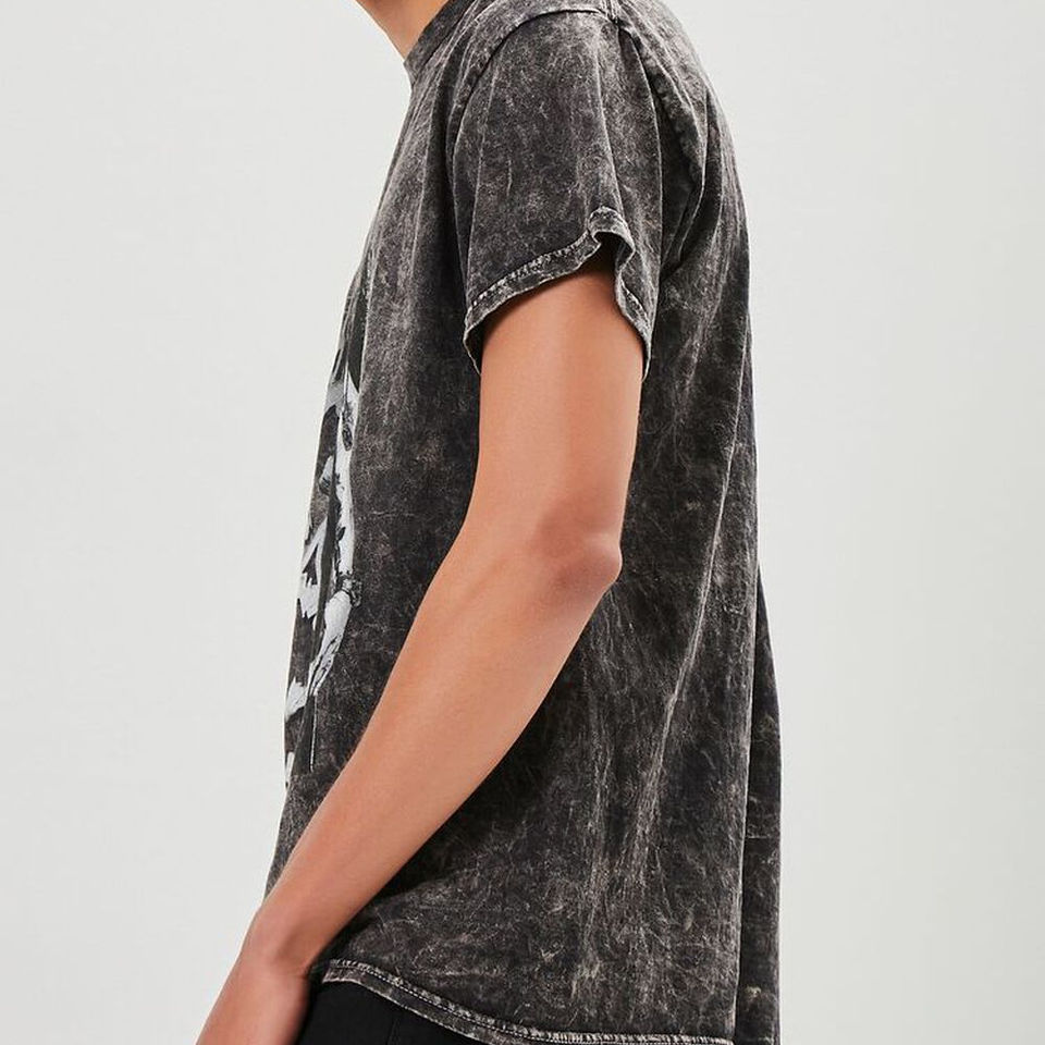 Camiseta de Verano Personalizada con Estampado Gráfico Frontal, Lavada con Ácido, de Manga Corta, Estilo Urbano, 100% Algodón Jersey