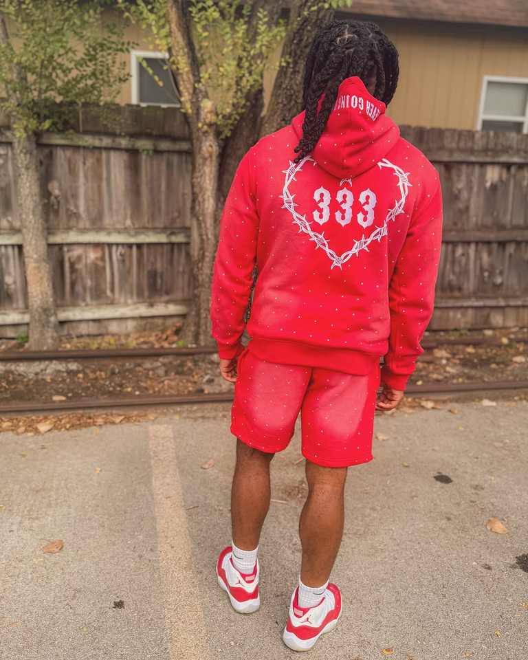 Personalizado lavado con ácido de impresión de la pantalla de retazos bordado Boxy Fit camisetas pantalones cortos conjuntos para los hombres