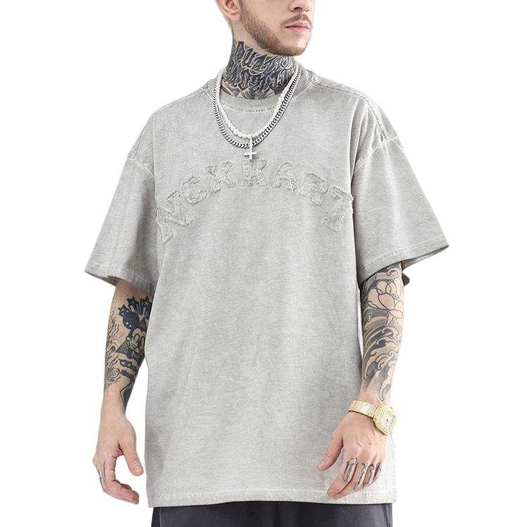 Camiseta lavada con ácido personalizada para hombre, camiseta de gran tamaño en blanco de algodón pesado desgastado, Camiseta 100% de algodón para hombre, venta al por mayor