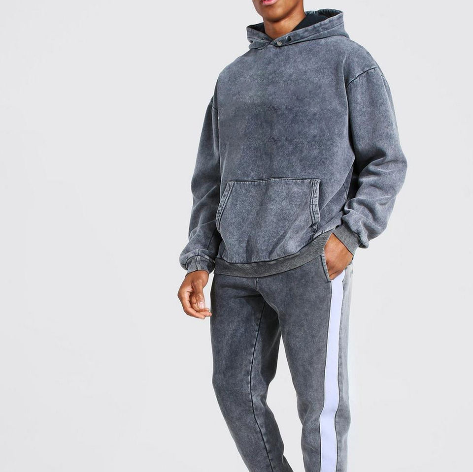 Chándales con capucha lisos de invierno Unisex ajustados Vintage lavados con ácido personalizados pantalones de chándal estampados desgastados