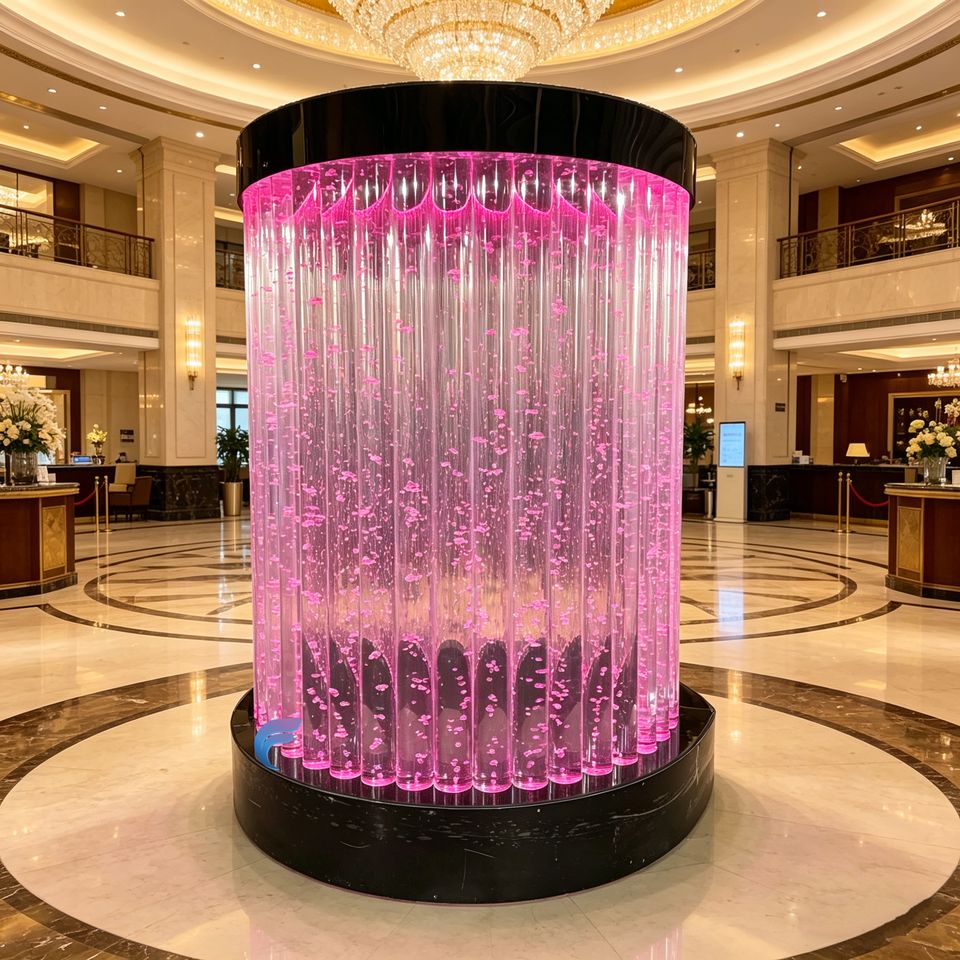 Panel LED Redondo de Acrílico Personalizado con Diseño de Burbujas Costeras para Proyectos de Pilares de Vestíbulo