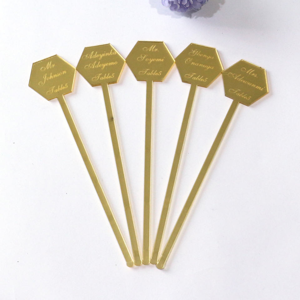 Item Name:custom gold m irror stirrers with engraved different names