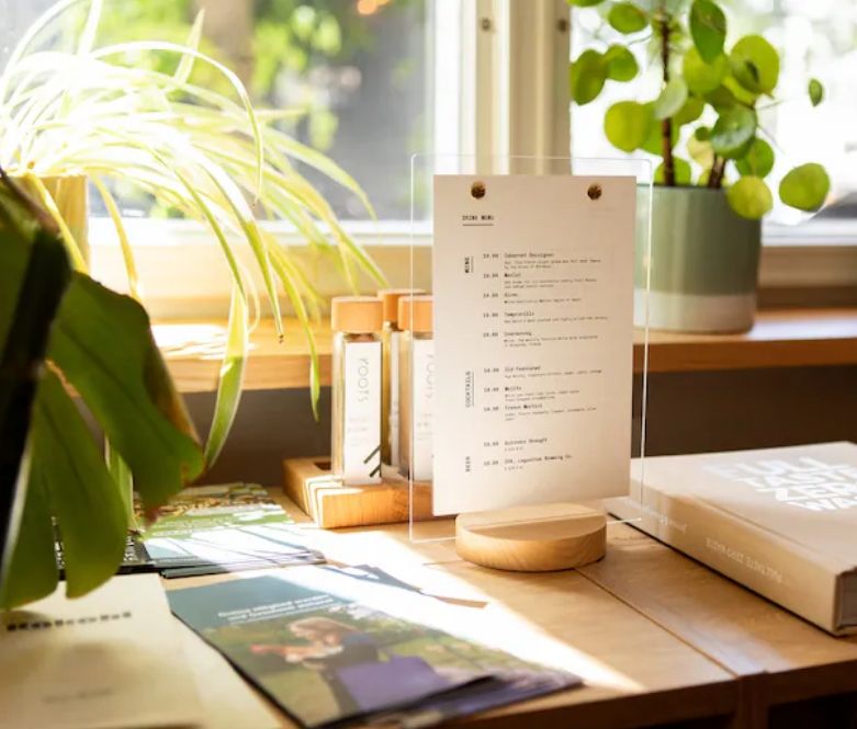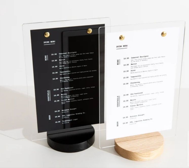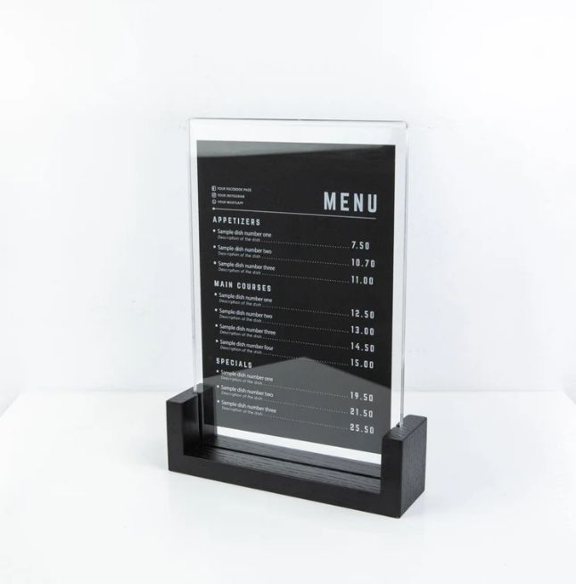 Soporte de menú de acrílico personalizado con logotipo grabado