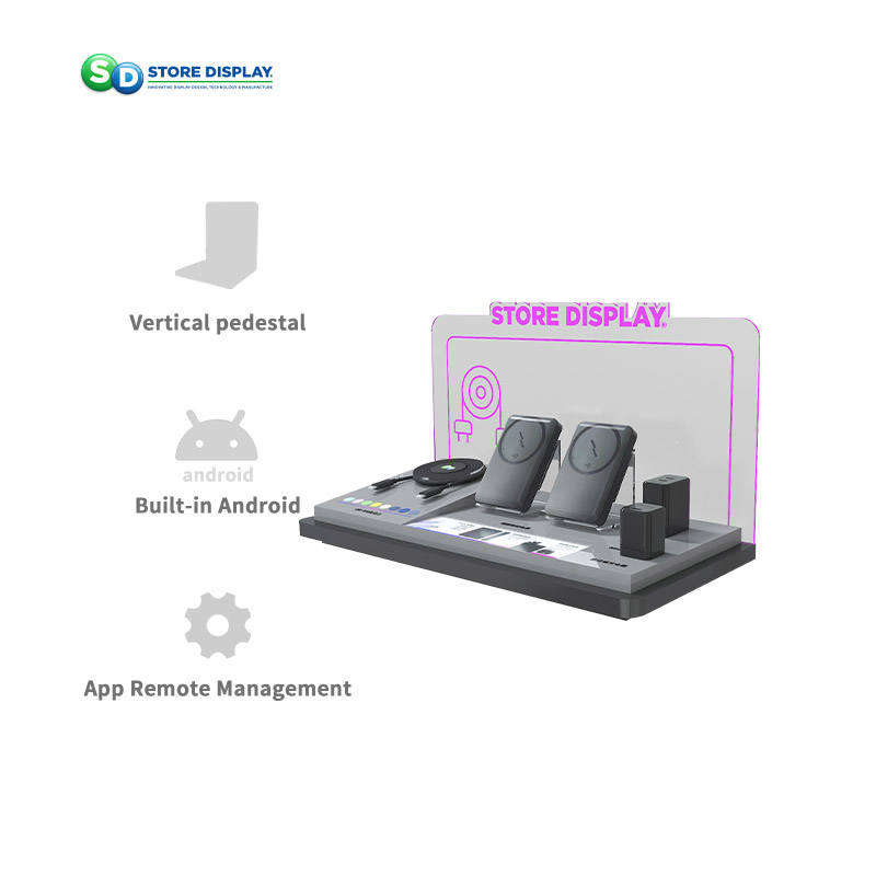 Organizador de acrílico personalizado, Banco de energía, soporte de exhibición 3C, uso en interiores, OEM, LCD, soporte de datos digitales, Mostrador de tienda, tienda