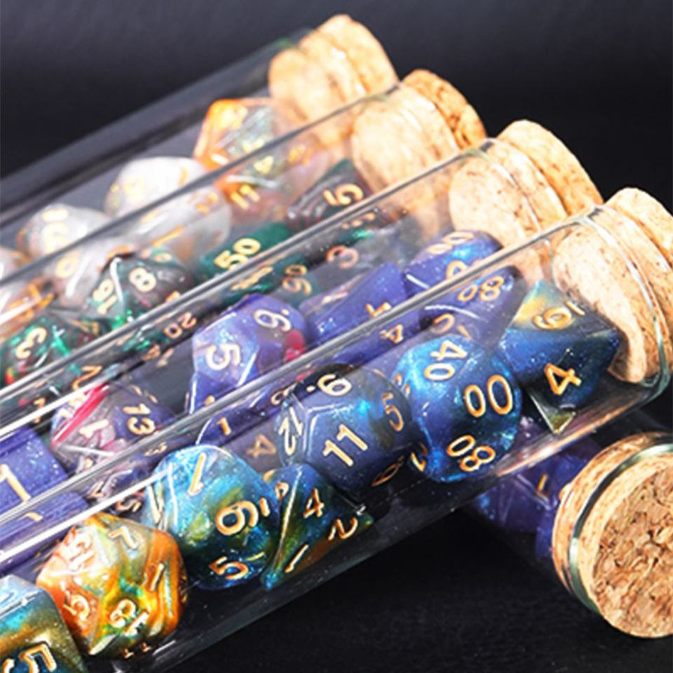 Set Personalizado de 7 Dados Poliédricos de Acrílico para D&D y RPG en Tubo de Plástico Transparente