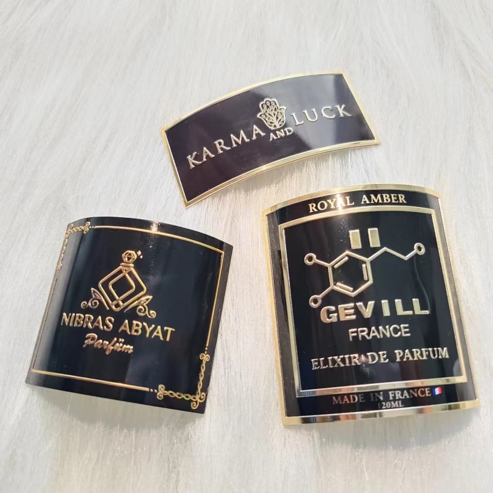 Etiqueta Adhesiva de Lujo Personalizada, Etiqueta Metálica Privada para Botellas de Perfume de Vidrio, Pedido Mínimo 500 Piezas con Logotipo Personalizado