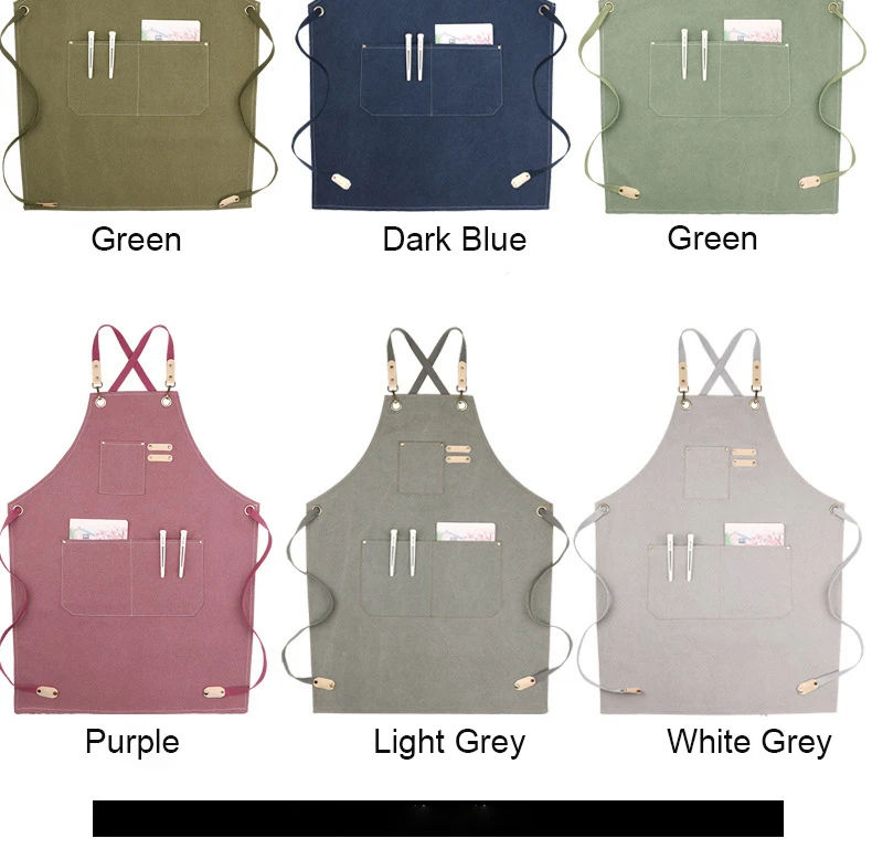 Delantales de chef resistentes reutilizables sin mangas de lona de algodón ajustables personalizados con bolsillos grandes para uso en la cocina