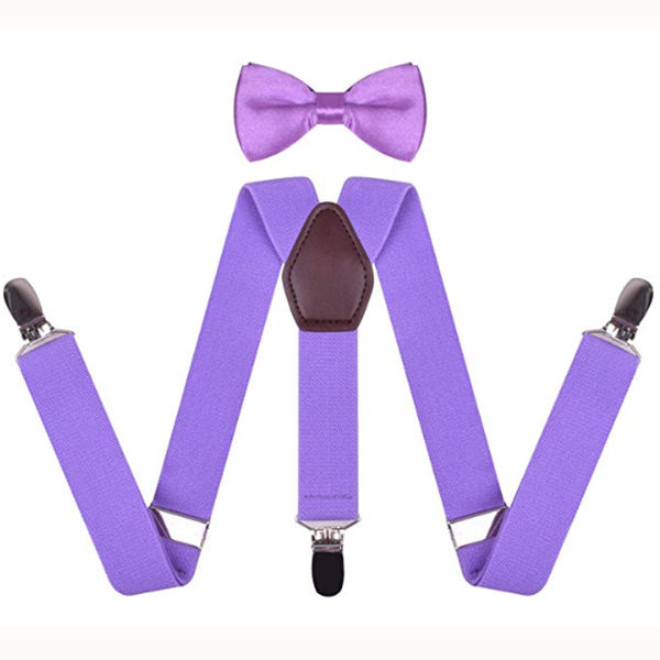 Tirantes Elásticos Ajustables Personalizados de Color Sólido Rosa, Rojo, Morado y Azul con Corbata de Moño a Juego, Traje de Etiqueta Unisex para Niños y Niñas