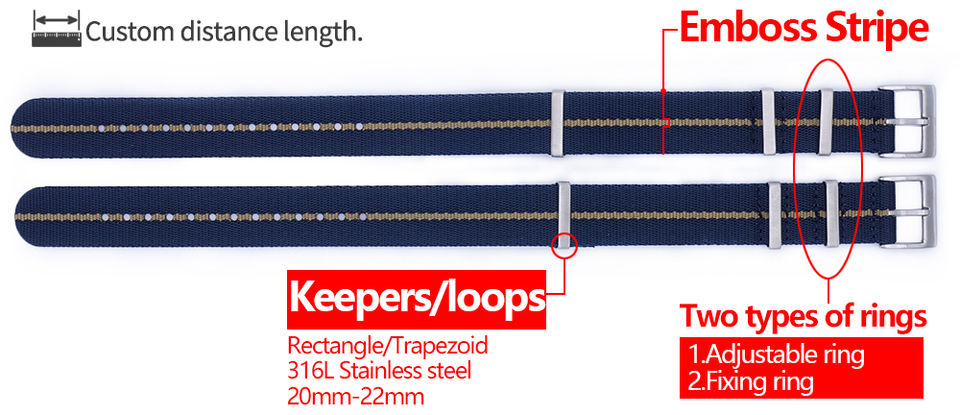 Correa de Reloj de Nailon Personalizada Ajustable con Rayas en Relieve de 20 mm y 22 mm