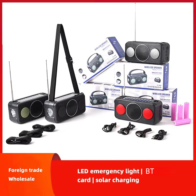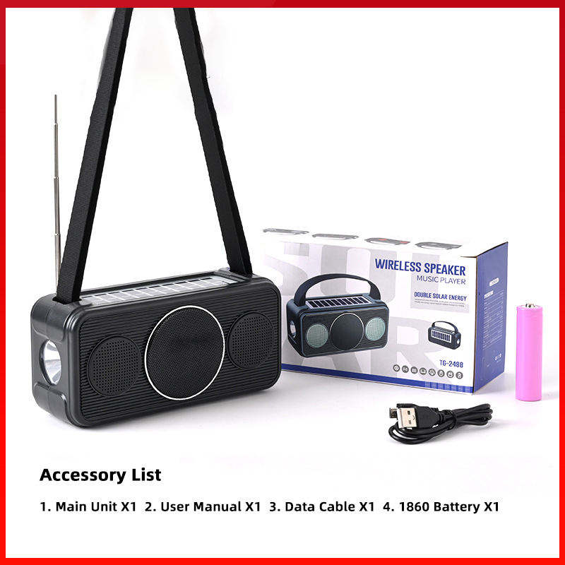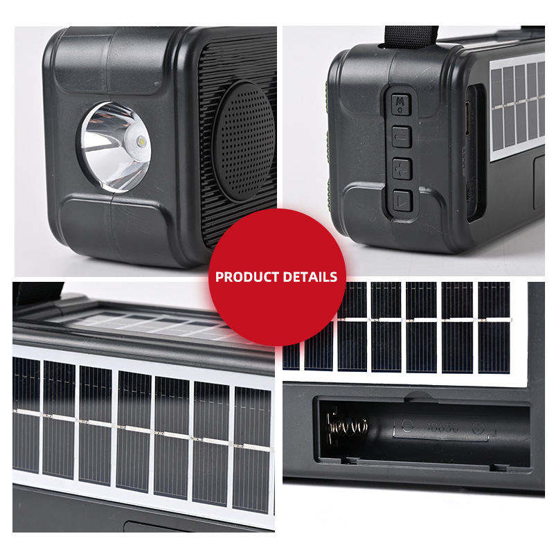 Radio FM con Triple Altavoz, Correa de Hombro Ajustable, Antena Telescópica, Linterna, USB, TF, Receptor de Audio para Exteriores