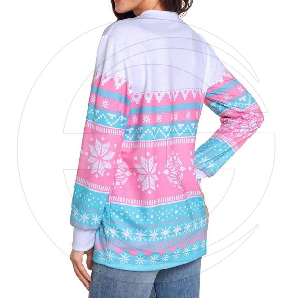 Sudadera con estampado de copo de nieve rosa, jersey de Navidad elegante, ropa informal, talla ajustable personalizada