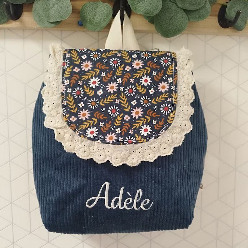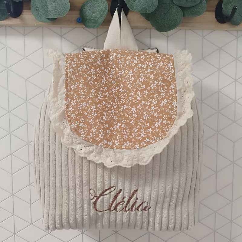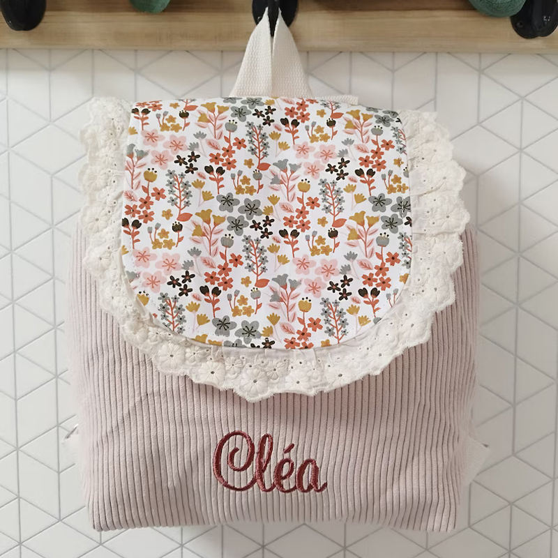 Mochila Personalizada con Botón Magnético Adorable, Mochila con Cordón Floral con Volantes, Mochila Dulce de Algodón