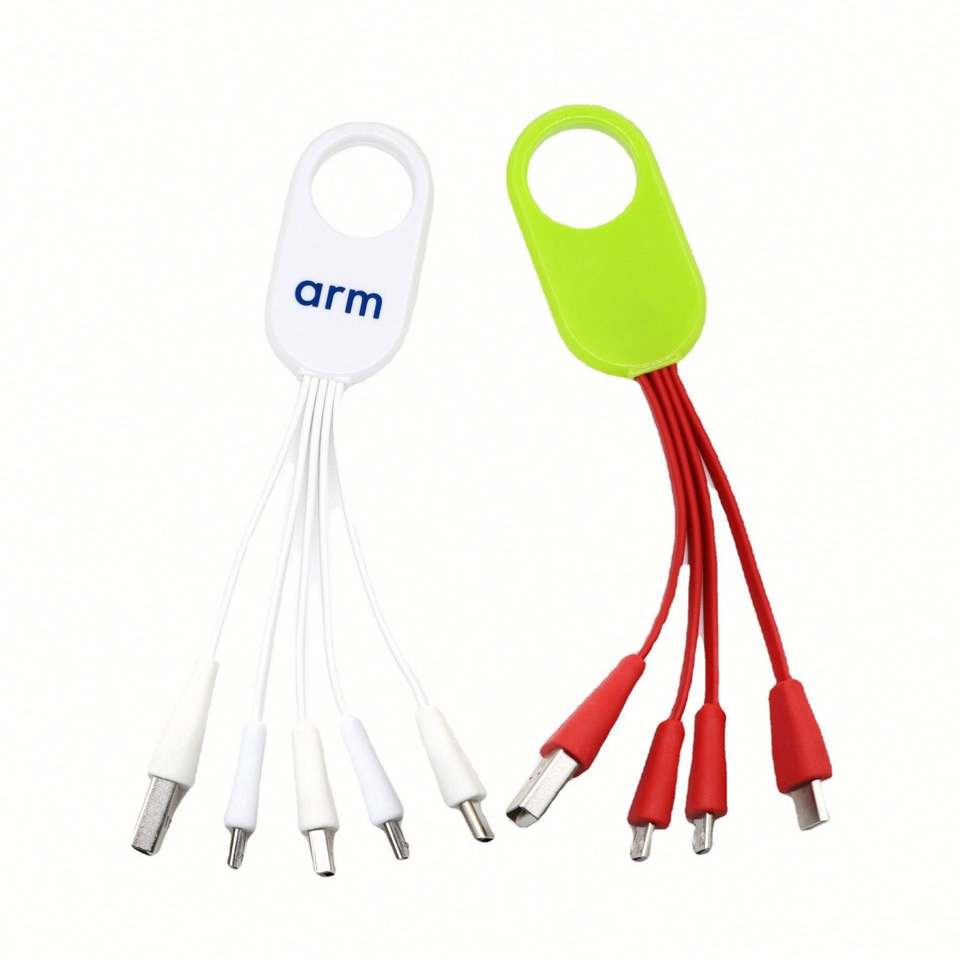 Cable de Carga Rápida con Logotipo Publicitario Personalizado, Cable de Carga Multiusos 4 en 1 con Trenzado de Nailon y LED, Cable de Carga Portátil con Llavero USB
