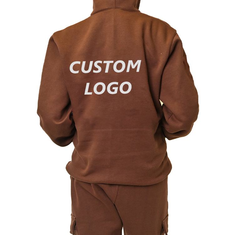 Sudadera con capucha con cremallera de lana de peso pesado con estampado completo personalizado Cuello con capucha y cremallera de algodón de invierno Patrón sólido con estampado de hojaldre
