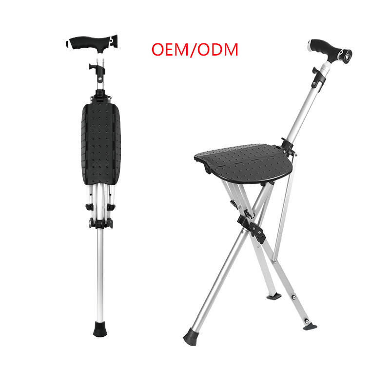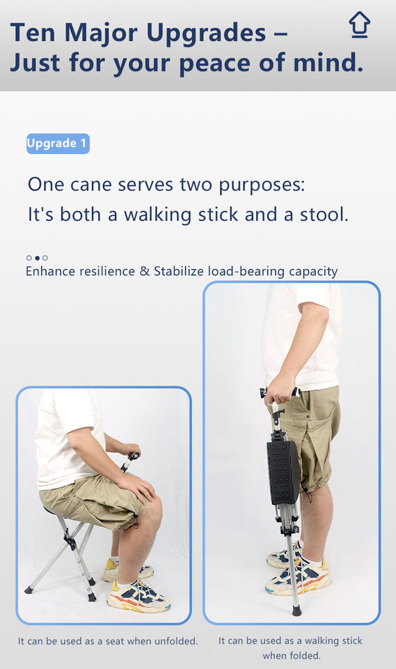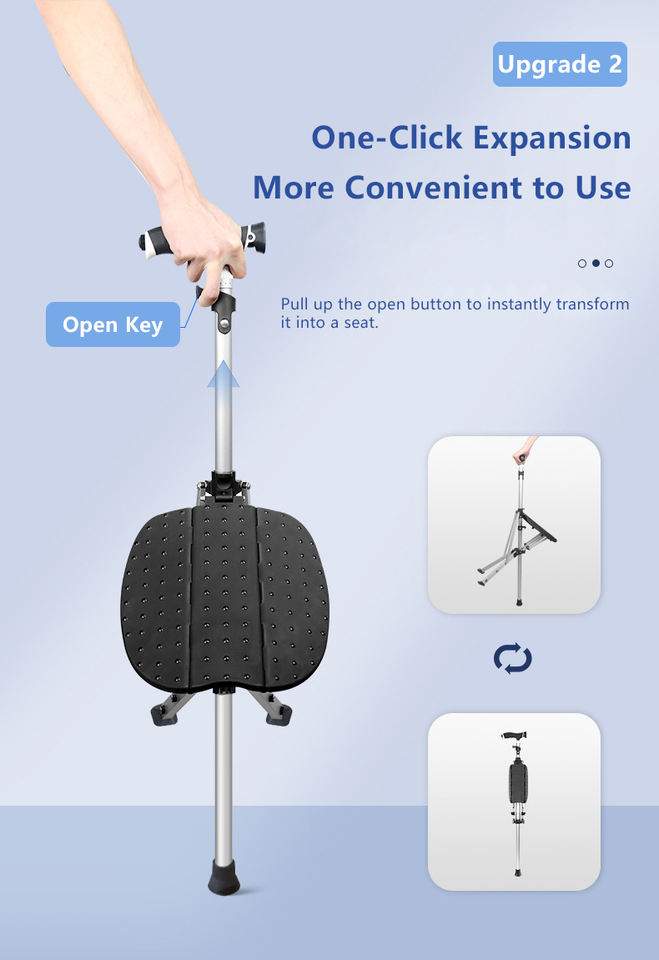 Bastón de Senderismo 2 en 1 de Aleación de Aluminio Personalizado, Silla Plegable con un Solo Clic, con Tapete Antideslizante para Acampar, Picnic al Aire Libre